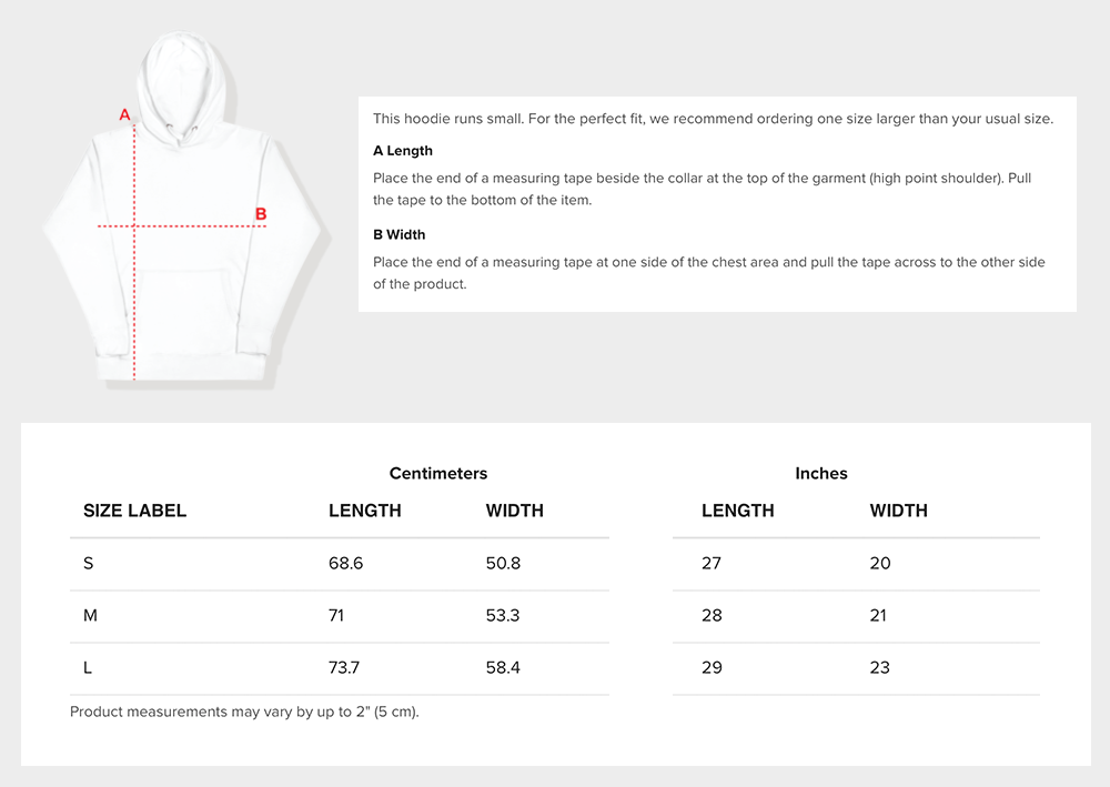 Disclaimer: This hoodie runs small. For the perfect fit, we recommend ordering one size larger than your usual size.